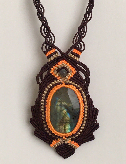 N-101 Macrame Necklace Natural Labradorite Handmade adjustable 16~30”