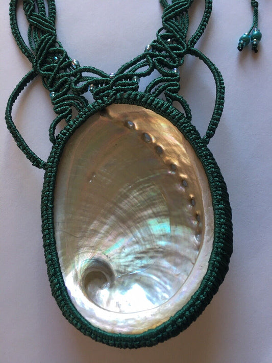 N21 Macrame Necklace Big Natural Abalone Shell Handmade adjustable length 16~32”