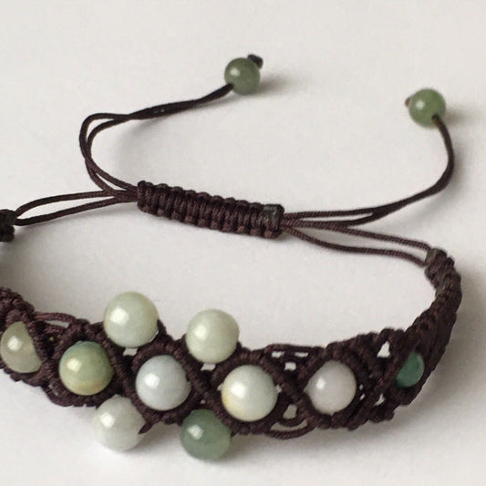 B-005 Macrame Handmade Bracelet Quality Genuine Green Jade adjustable Length