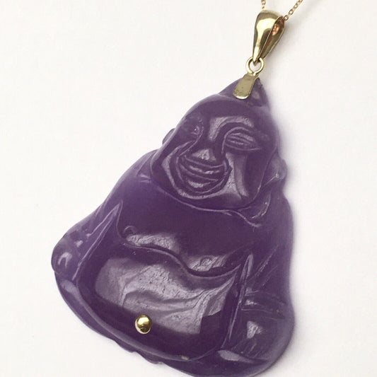 Big New 14k Solid Yellow Gold Natural Quality Lavender Jade Pendant Lucky Buddha