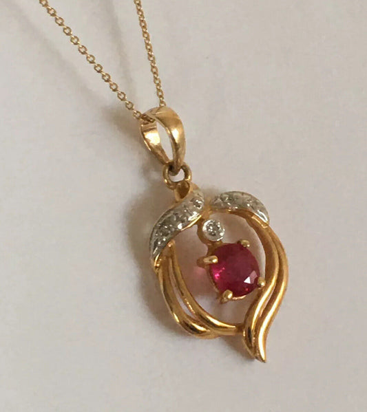 P-95130 New 14k Solid Yellow Gold Genuine Oval Ruby Pendant With Diamond