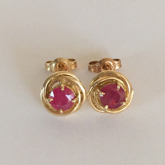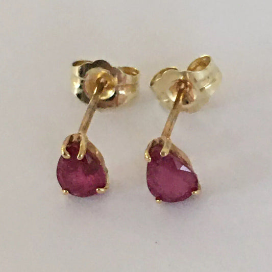 P-0215 14k Solid yellow Gold genuine Ruby Earrings Studs Round Precious Gemstone