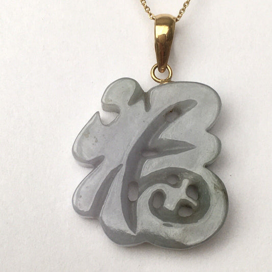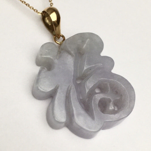 Q210420-6 New 14k Solid Yellow Gold Lavender Jade Pendant Good Luck “Happiness”
