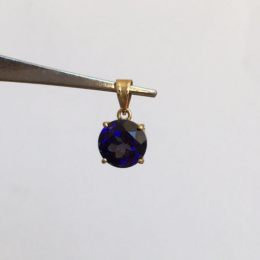 New 14k Solid Yellow Gold Y/G Round Iolite Pendant, 8*8mm, Sapphire Blue