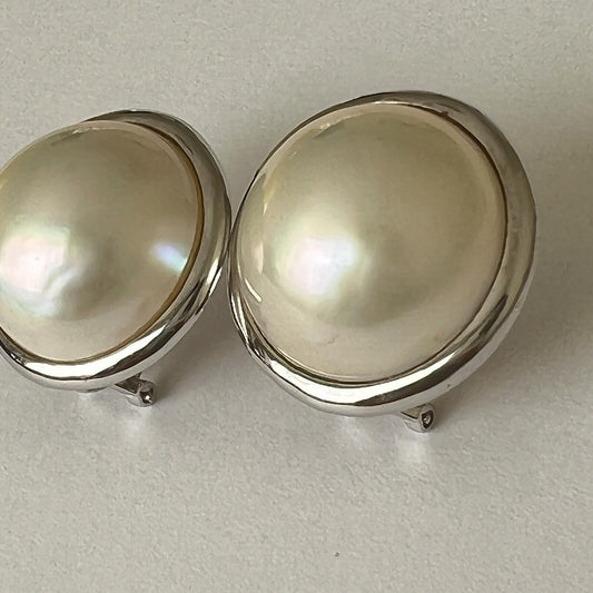 14k Solid White Gold Big Natural Round Mabe South Sea Pearl French Clip Earrings