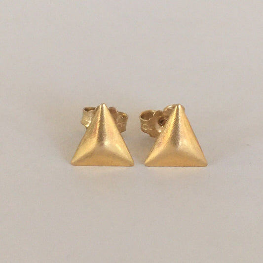 P-0360, New 14k Yellow Gold Earrings Studs Unique Triangle Design