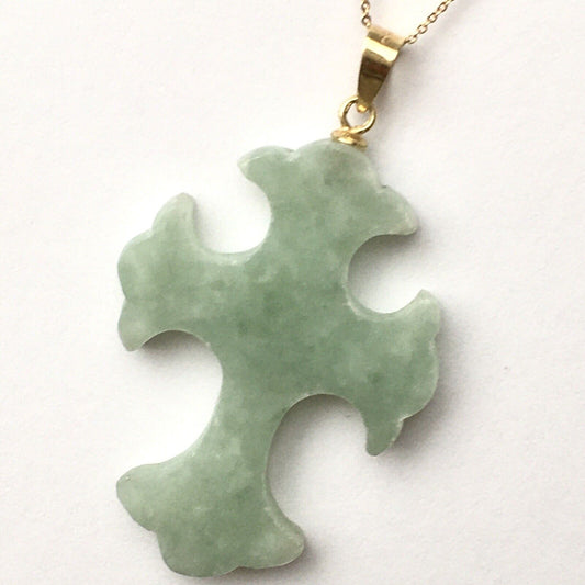 New 14k Solid Yellow Gold Light Green Jade Pendant Good Luck Cross Q210420-8