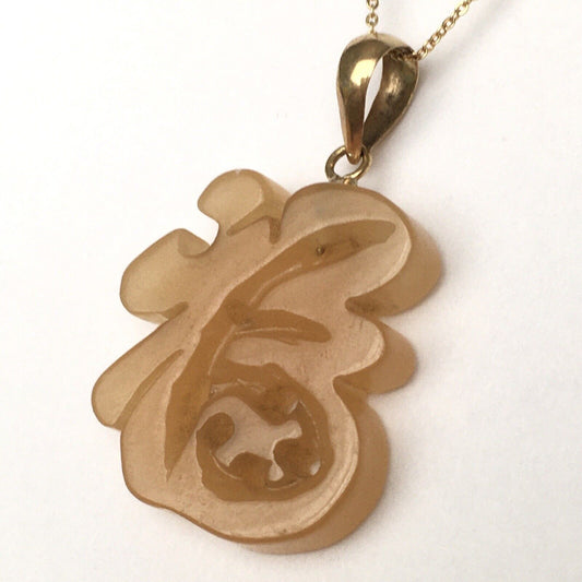 Q210420-7 New 14k Solid Yellow Gold Yellow Jade Pendant Good Luck “Happiness”
