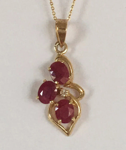 P-9786 New 14k Solid Yellow Gold Genuine Oval Ruby Pendant With Diamond