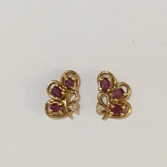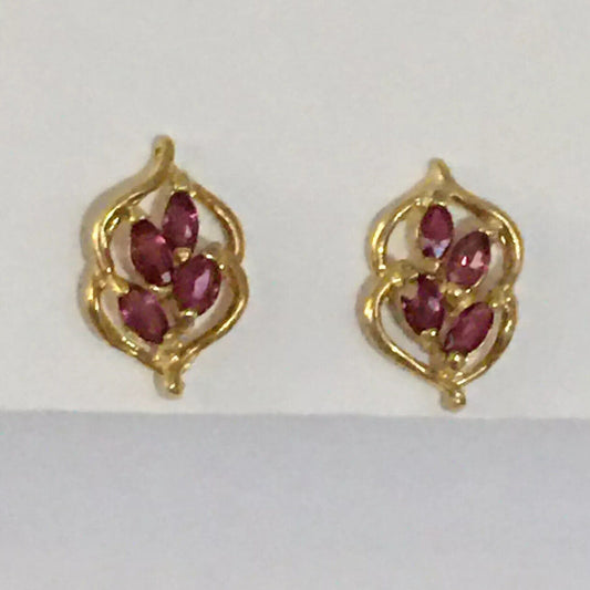 P-8810 14k Solid Yellow Gold Genuine Ruby Earrings Unique Flower Studs Gemstone