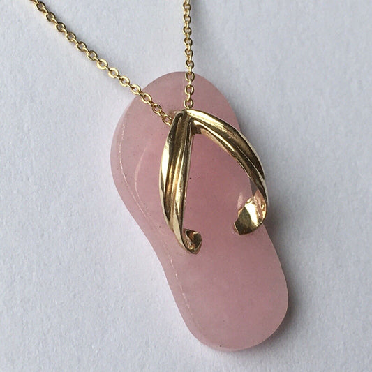 New 14k Solid Yellow Gold Pink Jade Pendant Good Luck Love Flip Flop