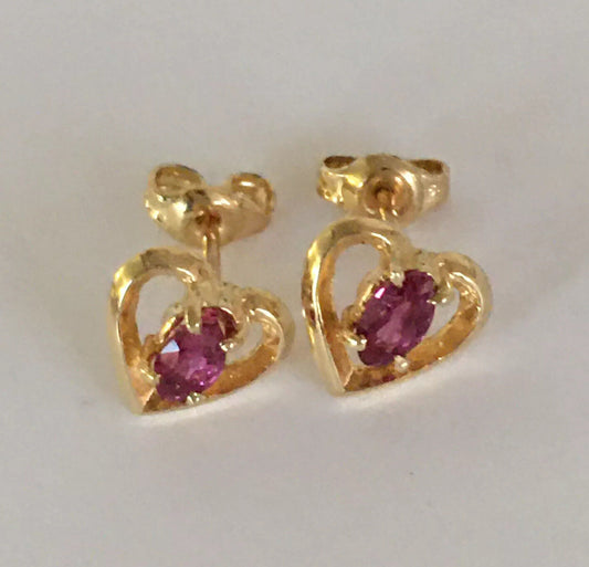 P-0280 14k Solid Yellow Gold Genuine Ruby Heart Earrings Studs Precious Gemstone