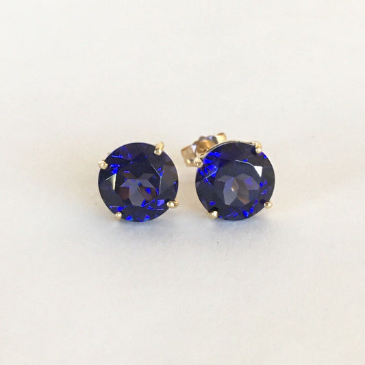 P2160 New 14k Solid yellow Gold Iolite Topaz Earrings Studs Round Gemstone 8*8mm
