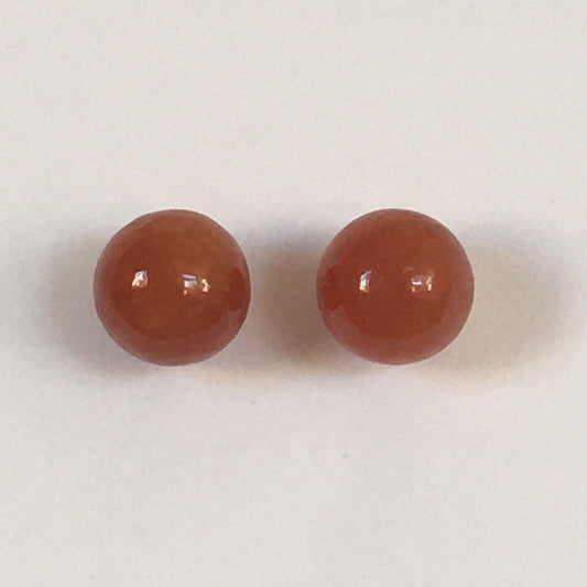 P-5203, New 14k Solid Yellow Gold Natural Red Jade Ball Earrings Studs 8mm