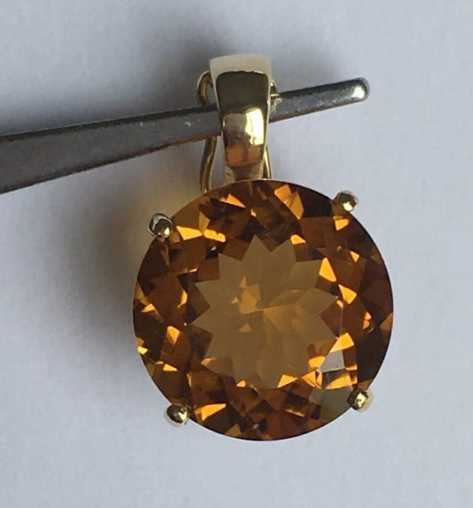 New 14k Solid yellow Gold Y/G Yellow Citrine Pendant, 12mm*12mm, Round, P-063504