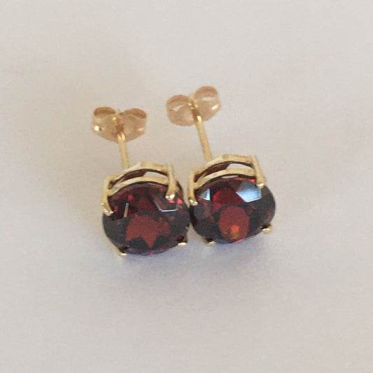 P2140 New 14k Solid yellow Gold Garnet Earrings Studs Round Gemstone 8*8mm