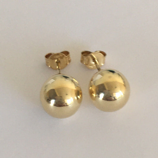 P-05100, New 14k Yellow Gold Earrings Studs 10*10mm Shining Ball