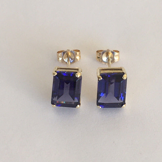 P2160 New 14k Solid yellow Gold Iolite Topaz Studs Earrings Gemstone 6*8mm
