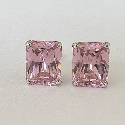 P2250 New 14k White Gold Pink Topaz Studs Earrings Gemstone 7*9mm Emerald Cut