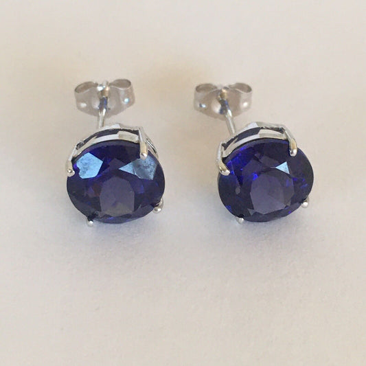 P2160 New 14k Solid White Gold Iolite Topaz Earrings Studs Round Gemstone 8*8mm