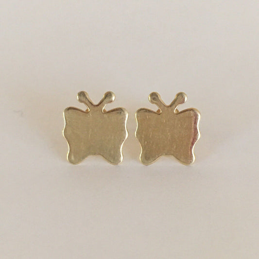 P-0360, New 14k Yellow Gold Earrings Studs Unique Shining Butterfly Design