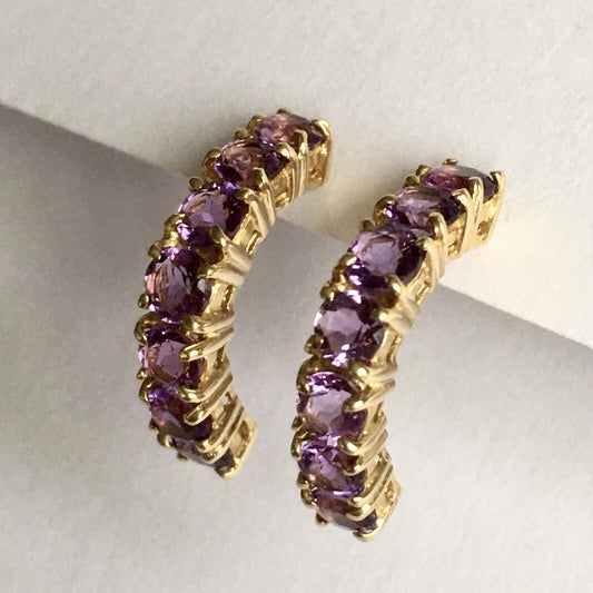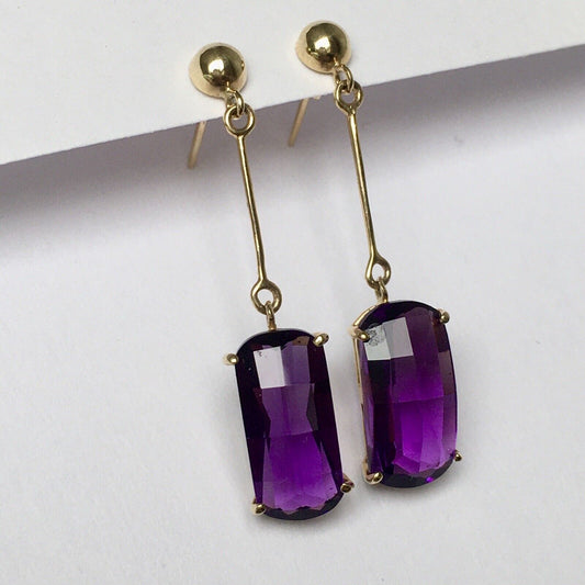 New 14k Solid Yellow Gold Y/G Amethyst Earrings, Studs, Dangling, Gemstones