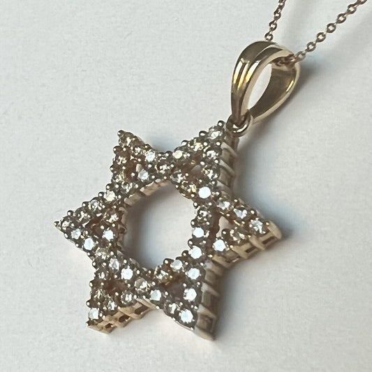 P-22338 New 14k Solid Yellow Gold Genuine Diamond Pendant hexagonal star Unique