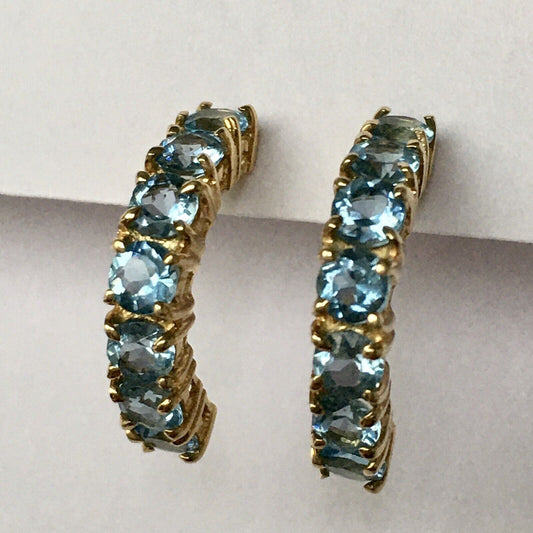 New 14k Solid Yellow Gold Y/G Natural Blue Topaz Studs Earrings Gemstone Gift