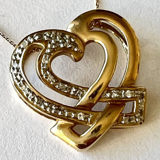 P-22060 New 14k Yellow Gold Genuine Diamond Pendant Heart Shape Italy Gold Stamp