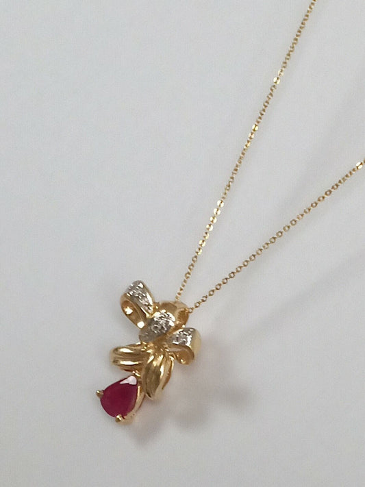P-99112 New 14k Solid Yellow Gold Y/G Genuine Ruby Pendant Pear Shape
