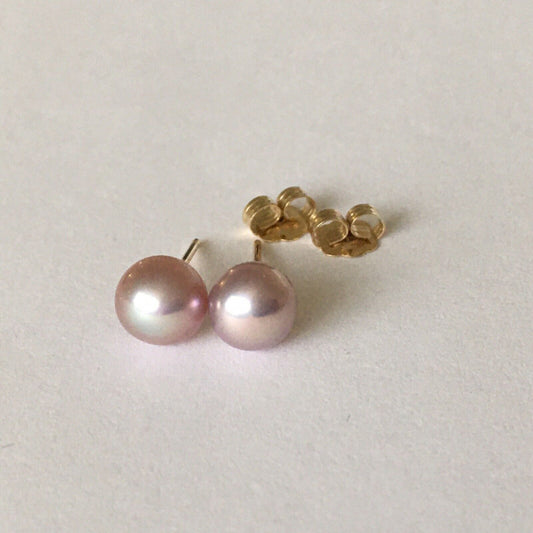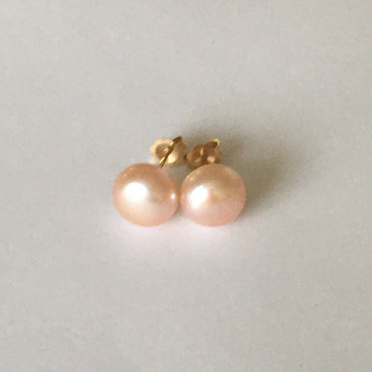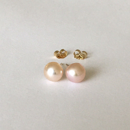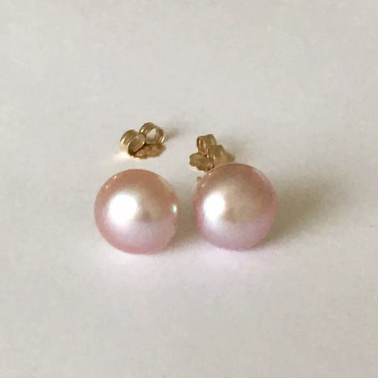 P-5208, New 14k Solid Yellow Gold Natural Pink Water Pearl Studs Earrings, 8.5mm