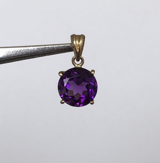 P-0601, New 14k Solid Yellow Gold Y/G Round Amethyst Pendant, 8*8mm
