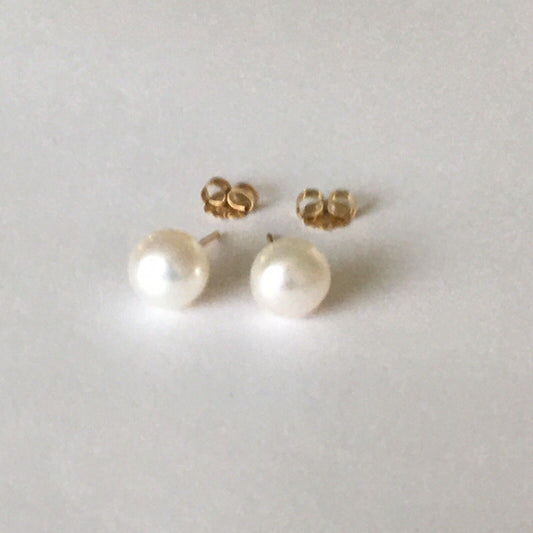 P-5208, New 14k Solid Yellow Gold Natural Fresh Water Pearl Studs Earrings, 8mm
