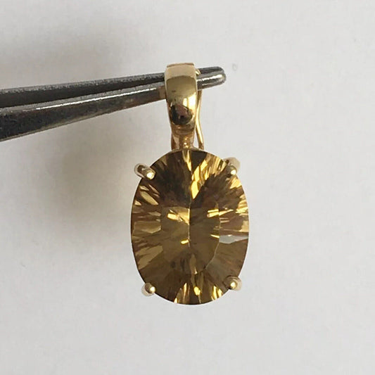 P-6354, New 14k Solid yellow Gold Y/G Oval Brown Citrine Pendant, 10mm*14mm