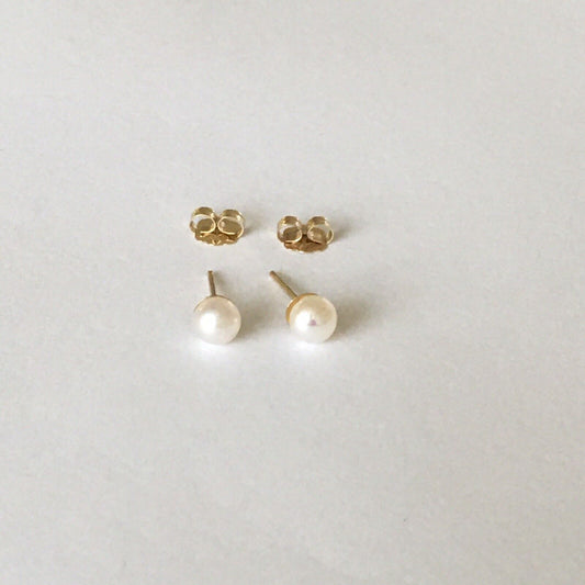 P-5204, New 14k Solid Yellow Gold Natural Fresh Water Pearl Studs Earrings, 4mm
