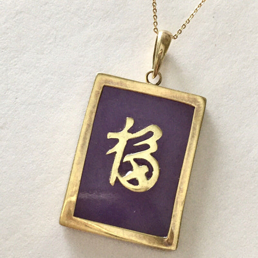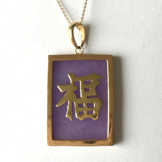 New 14k Solid Yellow Gold Lavender Jade Pendant “Happiness” Good Luck 4.2g