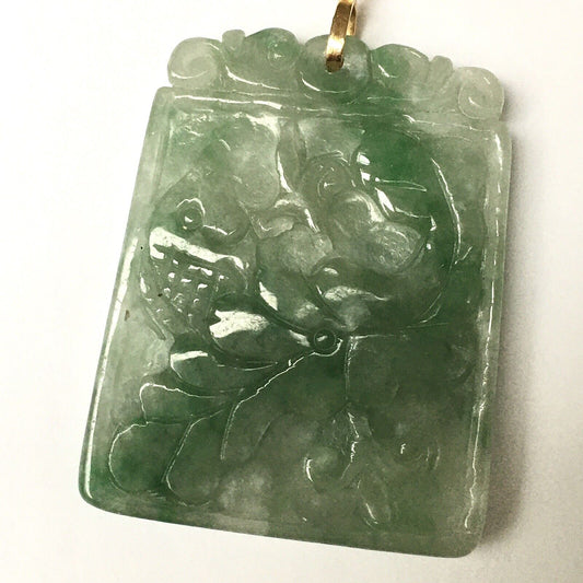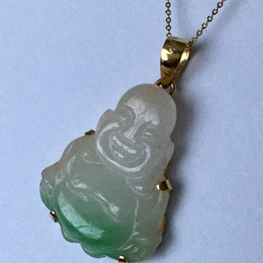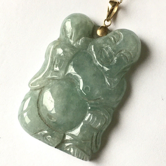 New 14k Solid Yellow Gold Big Natural Green Jade Pendant Lucky Buddha 18.8g