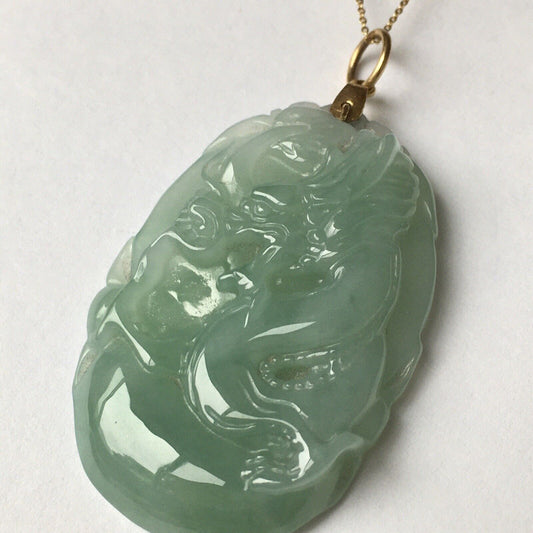 14k Solid Yellow Gold Big Black Jade Pendant Hand carved Good Luck Dragon 10.4g