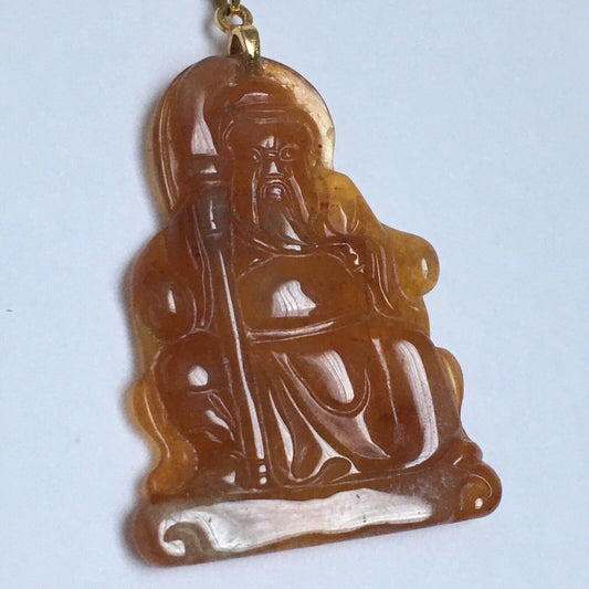 18k Solid Yellow Gold Natural Brown Jade Pendant Lucky Buddha 3.2g Hand Carved