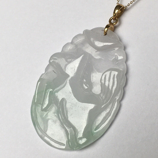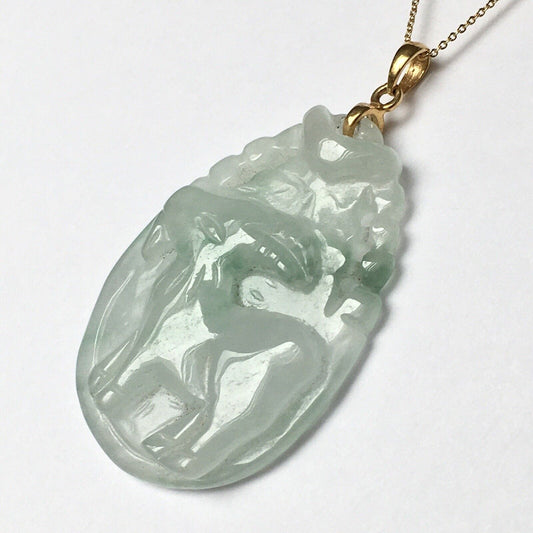 New 18k Solid Yellow Gold White Jade Pendant Good Luck Hand Carved Year Of Horse