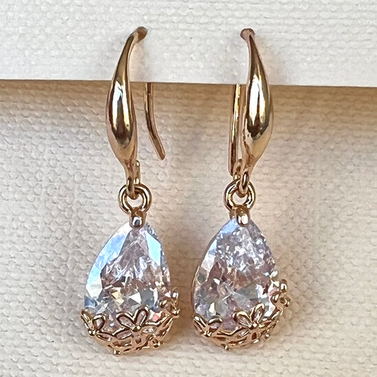 Quality White Crystal Earrings Rose Gold Rhodium Polish Allergy Free