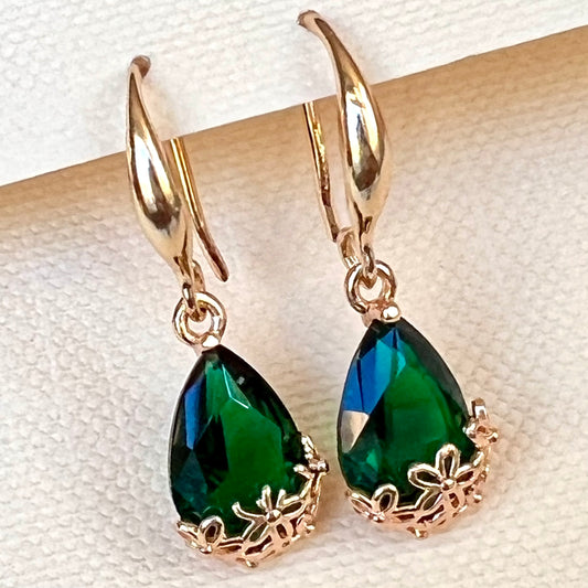 Quality Green Helenite Earrings Rose Gold Rhodium Polish Allergy Free