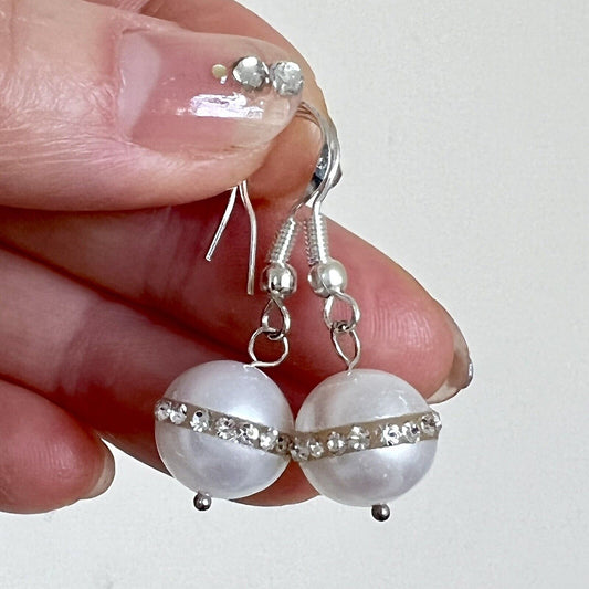 New White Gold Color Mesh Net Crystal Earrings Light Weight Handmade