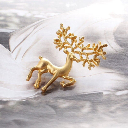 Gold Tone Matte Christmas Elk Deer Brooch Pin Fashion Jewelry