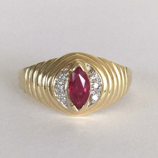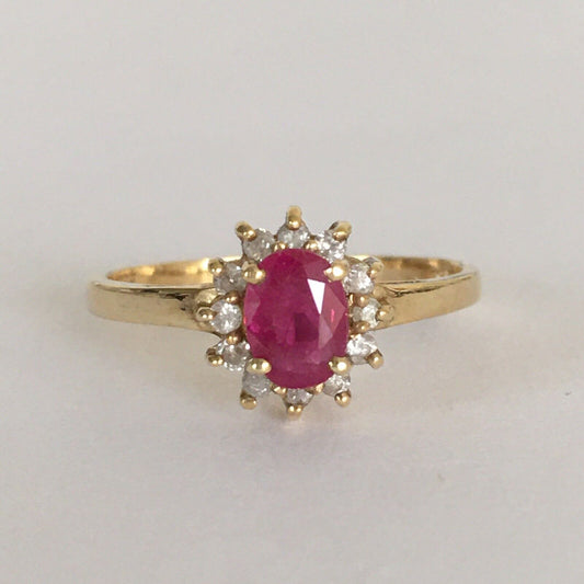 P-6331, New 14k Solid Yellow Gold Y/G Genuine Ruby Ring With Diamonds, SZ-6.5