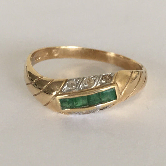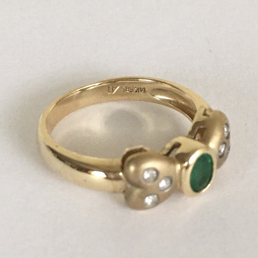 P-5930 New 14k Solid Yellow Gold Genuine Emerald With Diamond Ring SZ-6.5 Bowtie