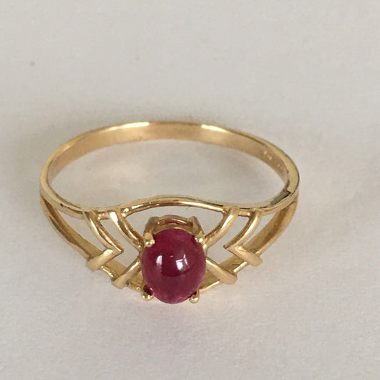P-5610, New 14k Solid Yellow Gold Y/G Genuine Ruby Ring, Oval Shape, SZ-6.5